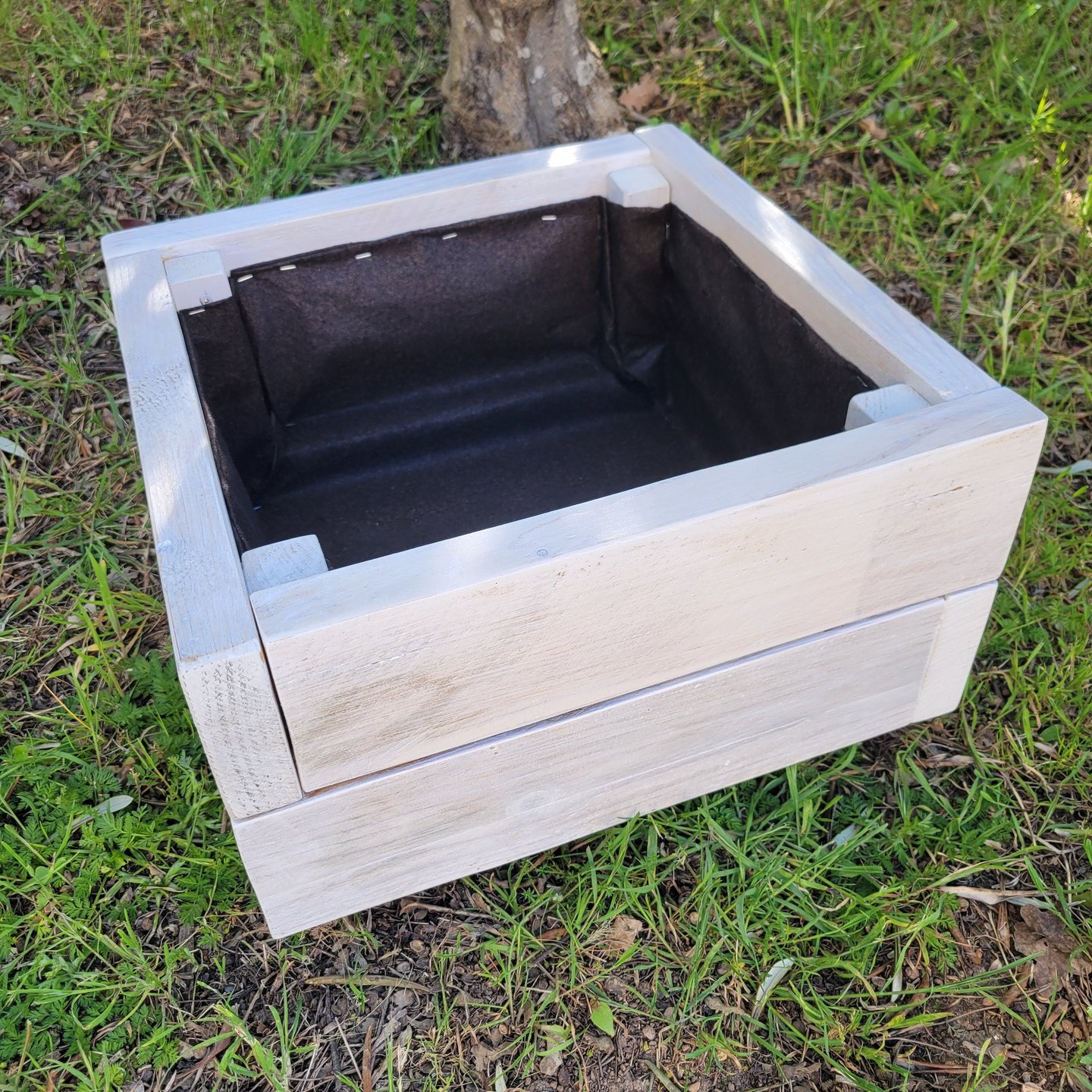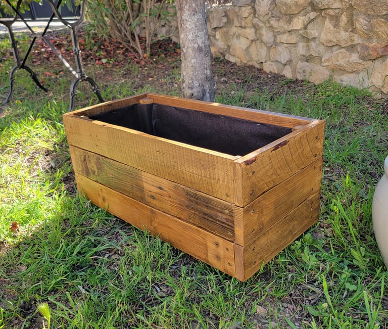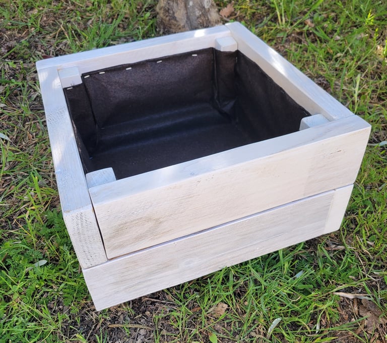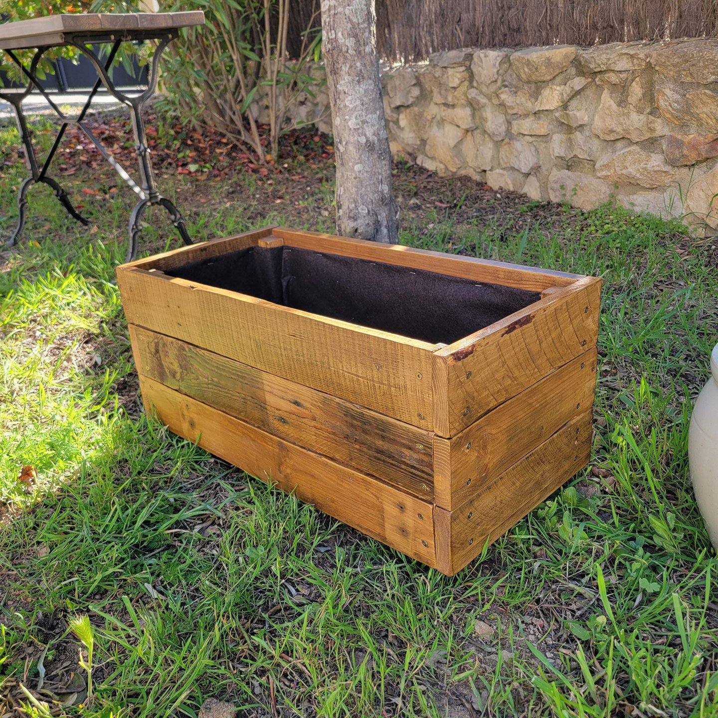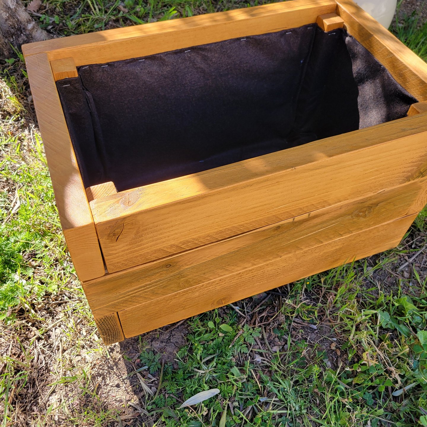 Jardinière lasurée avec géotextile prête à accueillir vos plantations